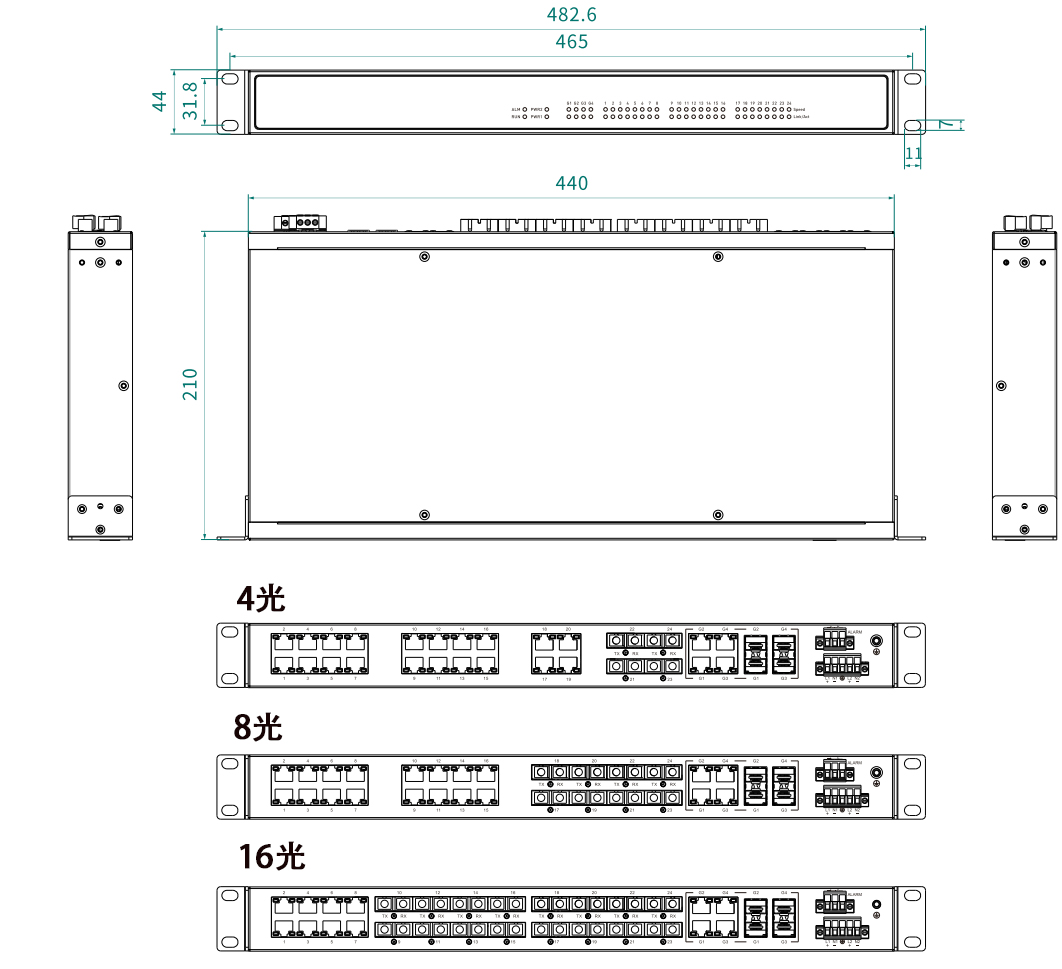 482.6×44×210(mm)(含挂耳) |